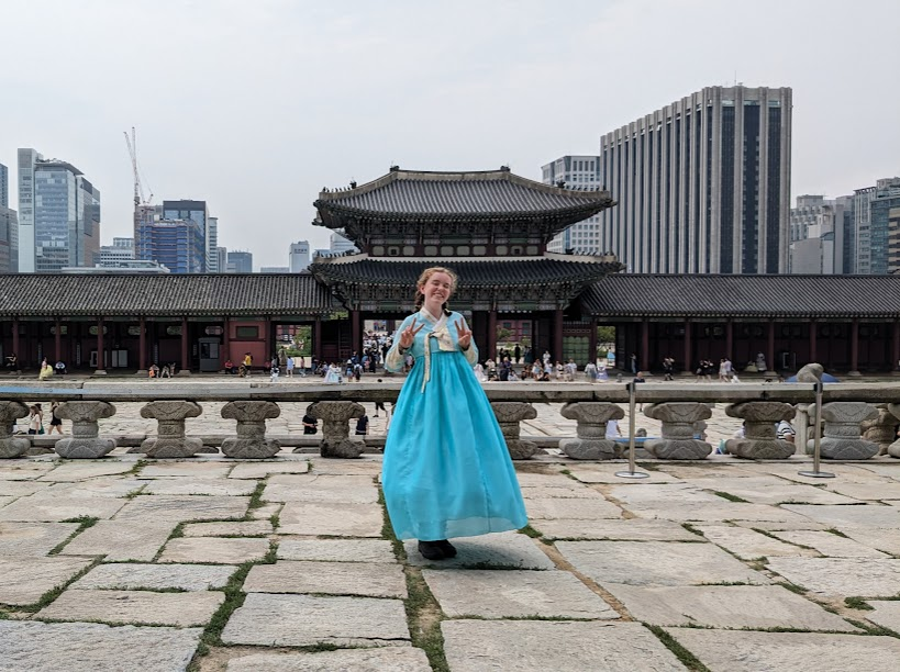 The trip helped me to develop my leadership, planning and communication skills, and definitely taught me a lot about how resilient I can be! The Korean people were all so kind and welcoming, and it was great to engage in the local culture. We saw some amazing places, including the demilitarised zone, multiple eye-opening museums about Korean history and the Korean war, some beautiful palaces and stunning scenery. We even tried Korean traditional dress and saw the whole city from Seoul tower. We also got the opportunity to see the Korean WAGGS centre. The best part of the trip was meeting new people both at the jamboree site and in Seoul, and I managed to swap a lot of badges which is always great!